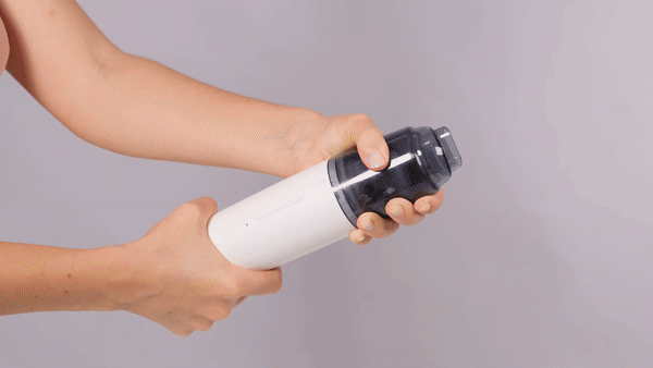 Just twist counter clockwise to open the dust bin, remove the strainer and separate filter to empty the dust bin.